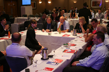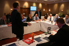Rather than have a succession of individual speakers Britannia brought the whole of a day’s business session into a 90 min workshop with members choosing which subjects interested them most and switching every 20 minutes or so. Steve Jordan then had the interesting task of summing up the discussions on each of eight tables for the whole audience in 10 minutes flat. The whole process was certainly high energy but nobody wasted a moment and everyone had the chance to speak to experts about subjects that were important to their businesses and bounce ideas off each other. The subjects on discussion included: Search Engine Optimisation; Commercial Moving; Van Hire; Increasing Shipping Revenue; Document Storage and Shredding; and much more.