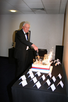 The dinner celebrated Britannia’s 30-year anniversary and guests were invited who had played a formative role in the organisation’s development including David Tracey, Bill Walker and founder member of Britannia, John Court. Angus Russell did a fine job as MC and auctioneer and David Trenchard gave a bouquet of flowers to Jenny Horner who was celebrating her 65th birthday. To mark the 30th anniversary of Britannia, John Court, who had been there at the company’s inception, cut an anniversary cake specially prepared for the occasion.