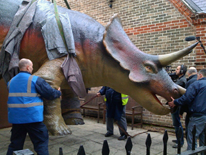 Museum curator Tim Batty said, “Pickfords was keen to help and thought that the move would be ideal for the TV programme. Tricky will be returning after a few weeks with a new finish to take pride of place in the Dinosaur Museum’s outside area. The triceratops will be away from the museum for as short a time as possible, as he is a firm favourite with visitors.”