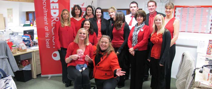 Photo: The UK Red Recruit team with Caroline (front right), Ray Inskip (back row) and six-week-old Finn.