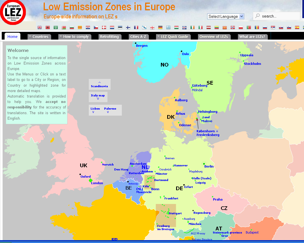 The website went online in January 2008 at a time, when over 70 cities and towns in eight countries around Europe had or were in the process of preparing Low Emission Zones. Today there are around 200 Low Emission Zones in nearly 1,800 local authorities in nine European countries with more LEZs being planned for the future.