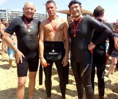 After the swim: (left to right) David Bigglestone, Andy Pittwood and Lewis Mills