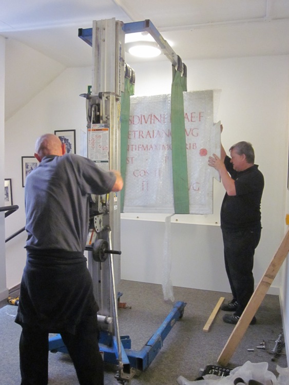Harrow Green, a business relocation specialist, won the contract after the highly complicated logistics involved had proved to challenging its competitors. The full-size replica marble dedication slab was first lifted onto a stair climber in the basement at the Roman Legion Museum in Caerleon. A specially constructed timber staircase had to be installed so that the slab could be transported up to street level and carefully loaded on to Harrow Green’s lorry. On arrival at the Centre for the Study of Ancient Documents in Oxford there was a logistical challenge to re-mount the artefact on to a specially constructed stand in its main stairwell.