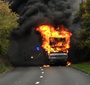 According to a report in the Daily Mirror, Mr. Cameron said he felt lucky to be alive after the incident, which took place at 10.15am on Wednesday 6 November. "It was about a minute between seeing the smoke, to us stopping and then the whole thing going up in flames. It is terrifying because if we had driven another 100 metres we would have been right next to a petrol station. I don't even want to think about what could have happened,” he said.