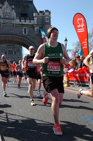 Photo: Simon Mason at the half-way stage of the London Marathon – April 2014