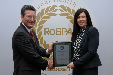 The presentation was made at the RoSPA Occupational Health & Safety Awards Ceremony at the Hilton Birmingham Metropole Hotel on 14 May.