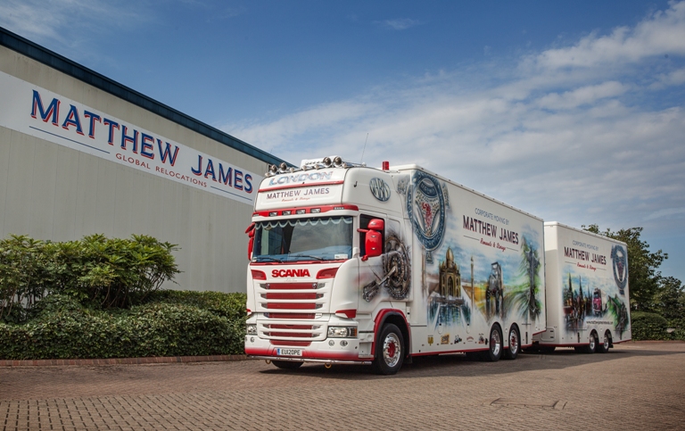So why spend £100,000 or so over the odds for a commercial vehicle? Matt is certain it makes good business sense. “The road trains are seen by millions of people all over the UK and Europe, they’re a sort of mobile PR campaign,” said Matt. “Also our clients, especially the corporate ones, love it when we arrive and park the trucks outside their premises, I think it makes them feel special.”