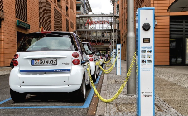 Photo: Electric car charging in Potsdamerplaz, Berlin.