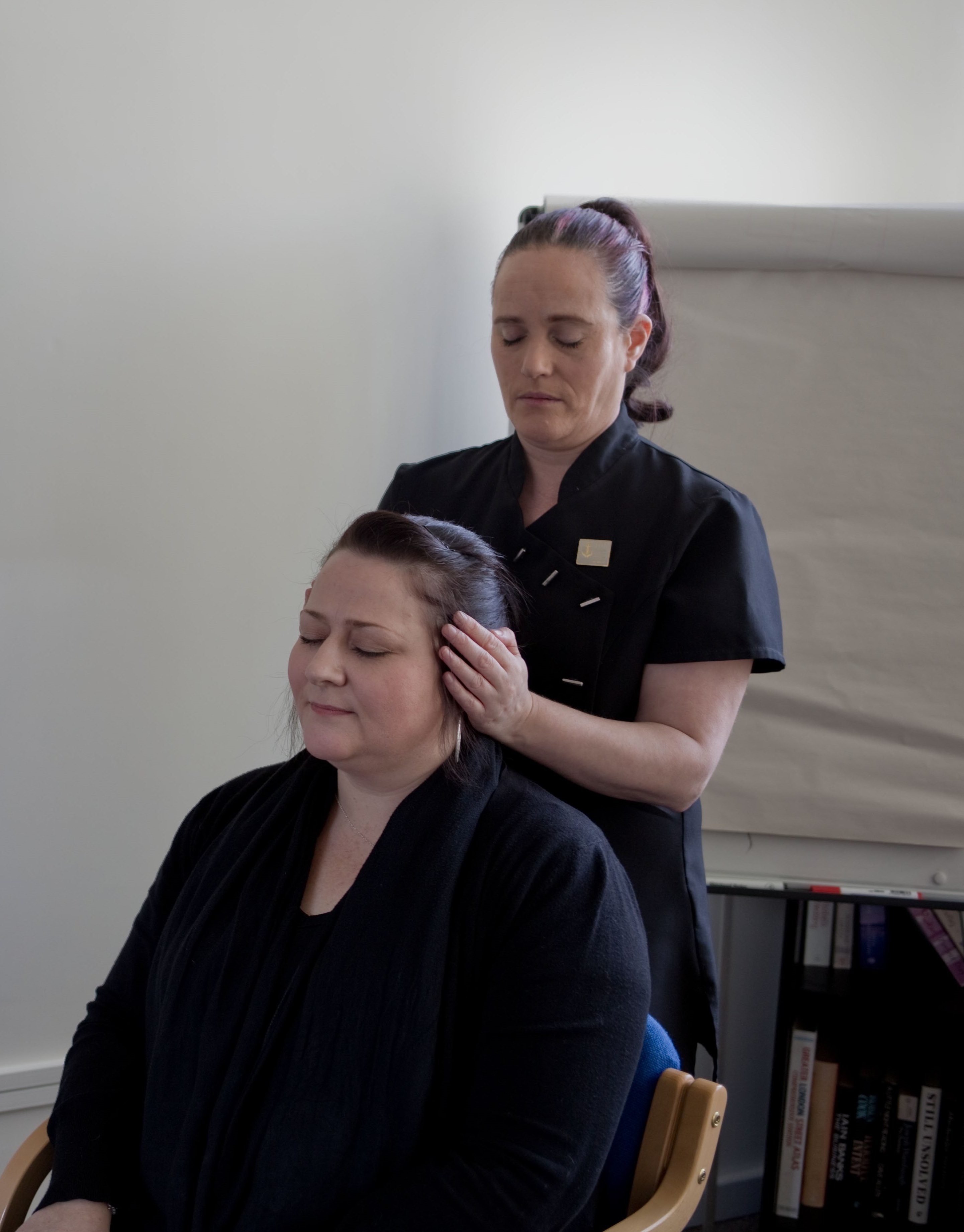 The treatments last for 20 minutes each and participants can choose from massage, Reiki or Indian head massage: massage being the most popular option.