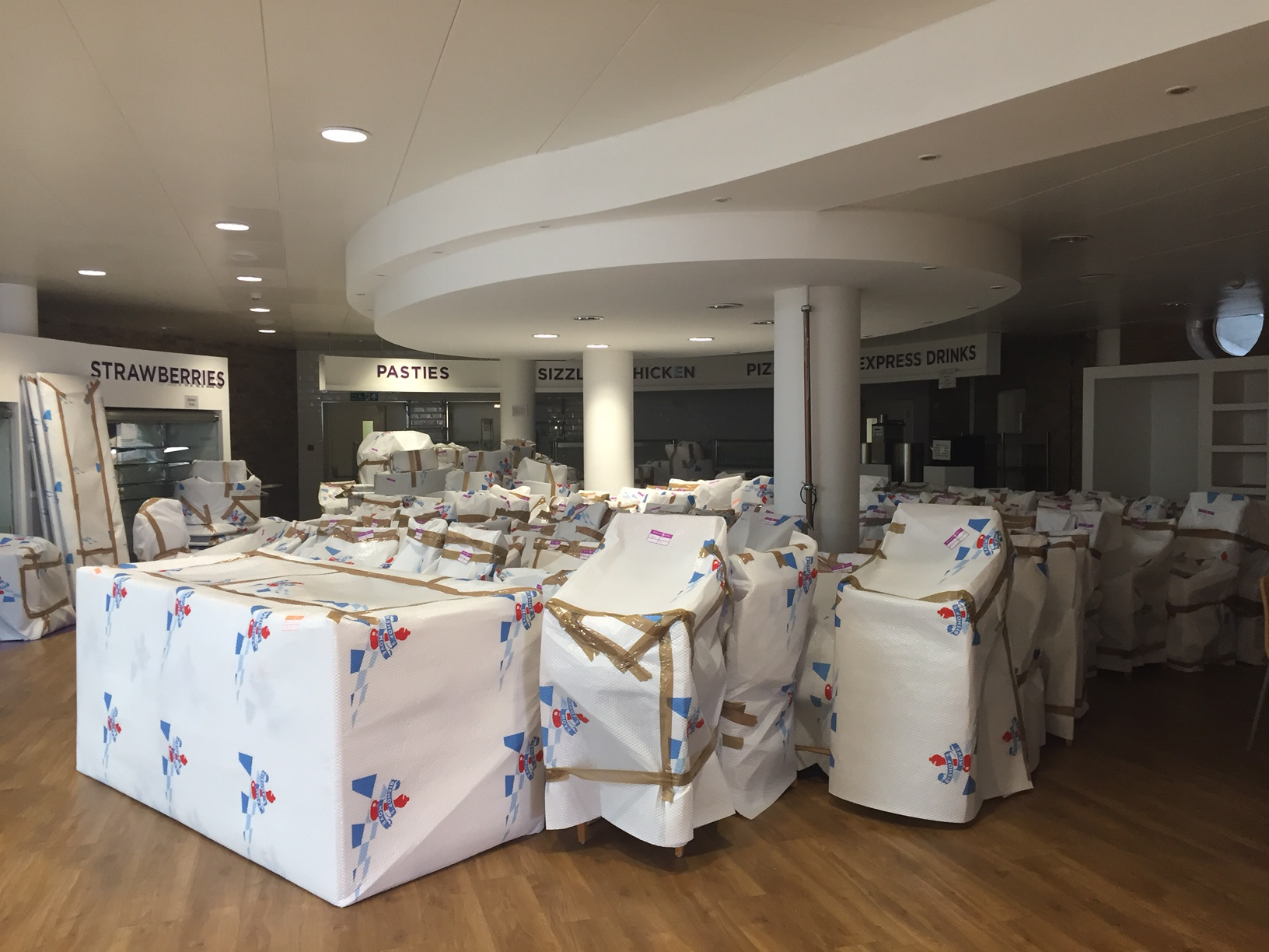 Bishop's conducted a survey on-site followed by a three-week planning period to minimise disruption during the building works scheduled for completion before the 2017 championships. Bishop's was required to pack and export wrap all of the furniture from the suites at No. 1 Court and then remove the blinds, curtains and fitted units. These items were then relocated and repositioned into secure storage areas. The company also dismantled temporary commercial refrigeration units.