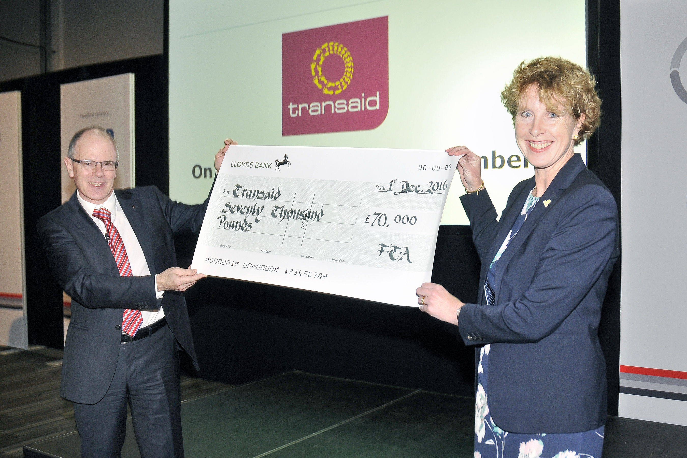 The Freight Transport Association (FTA) has presented transport charity Transaid with a cheque for £70,000, representing the funds raised by its members over the past three years through the annual membership renewal scheme.