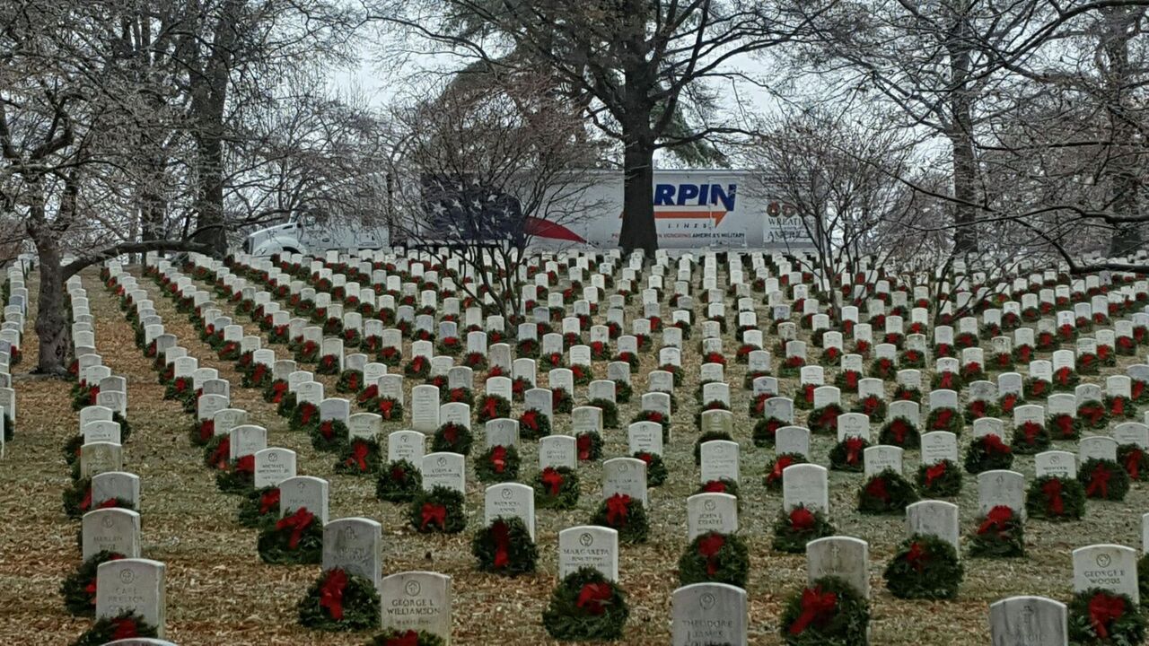 Photo: Wreaths distributed by Arpin drivers at Arlington Cemetery.